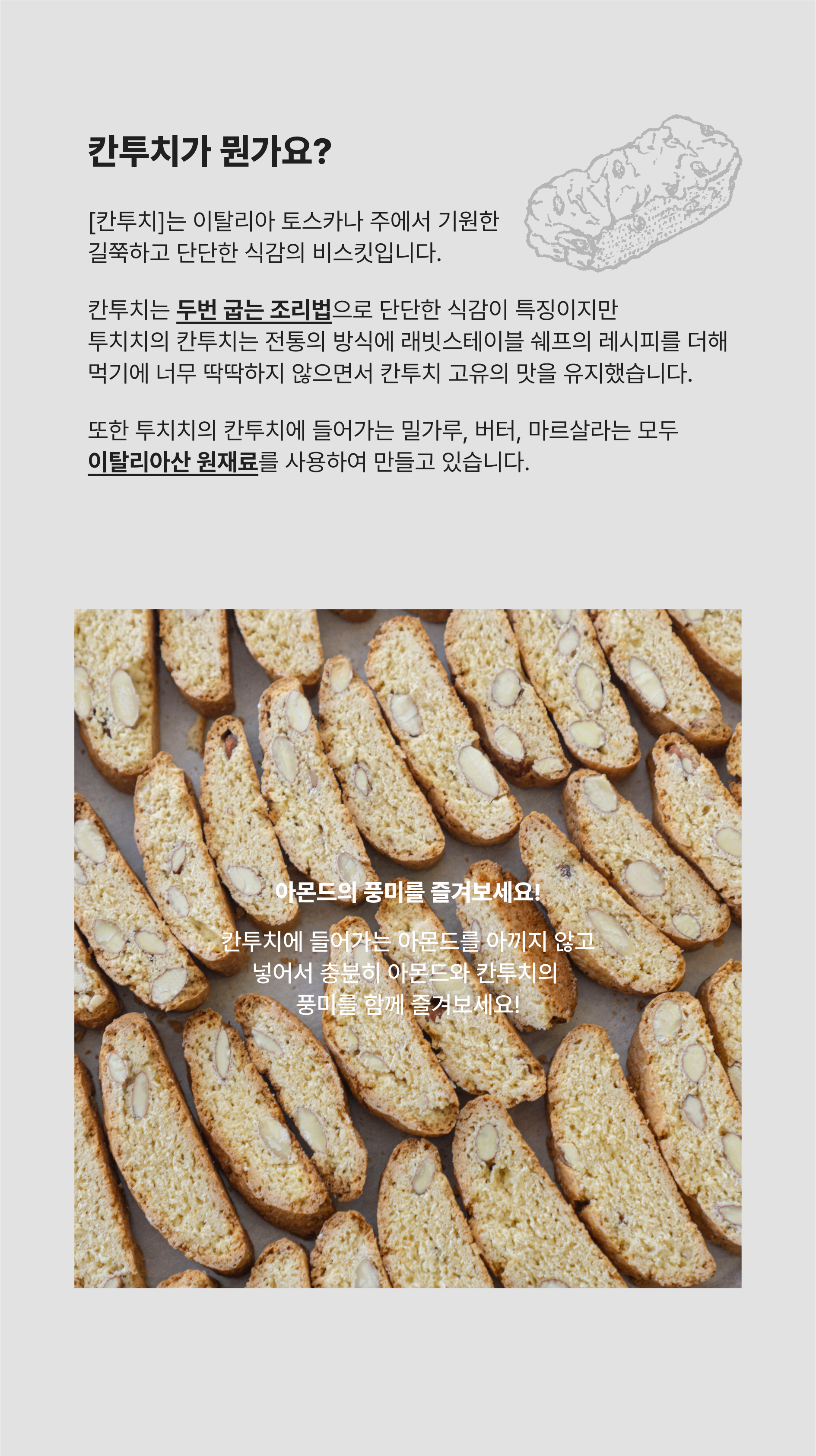 이탈리아 토스카나 주에서 기원한 두번 굽는 조리법으로 바삭하고 부드러운 식감의 비스킷입니다.